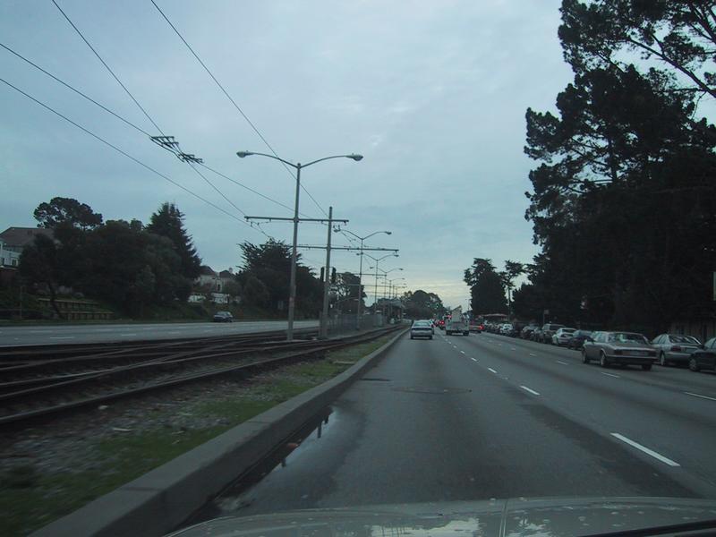 Heading south along 19th Avenue towards Junipero Serra, along the Muni tracks.