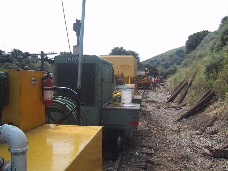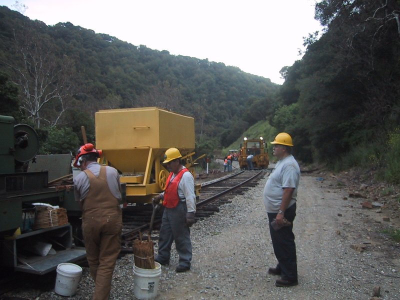 Here we are at mile post 32, loading away the tools after replacing ten ties at the site. |